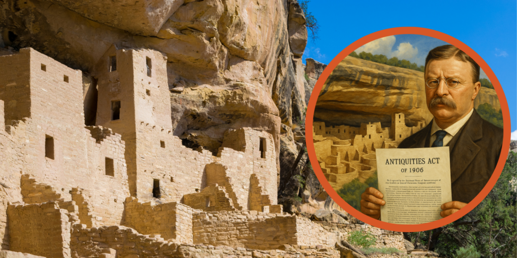 In the mid-to-late 1800s, archaeology played a significant role in shaping the development of the Antiquities Act of 1906, one of the first major pieces of U.S. legislation passed by congress and signed into law by President Theodore Roosevelt and designed to protect our nation’s cultural and natural heritage