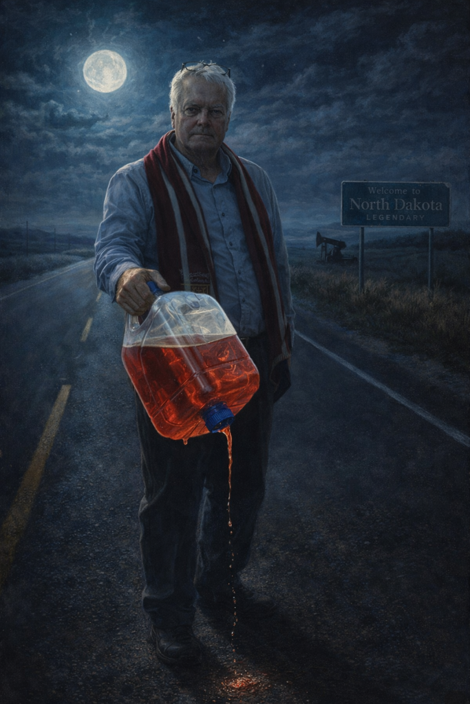 I said, “How about this? You bring the gas to a fencepost a quarter of a mile away, and I’ll have left three 20’s, even five, on top of it under a small rock. That way, you won’t have to get anywhere near me. I’m a fellow North Dakotan, and we North Dakotans help each other out.” “I’ll say no one more time. Ever since the oil boom came, I don’t trust nobody. I’m tired, and I’m ready to get home, and I have to close up.” “What should I do?” I asked. “Call the bar. Maybe someone there is drunk enough to come help you.” And she hung up.