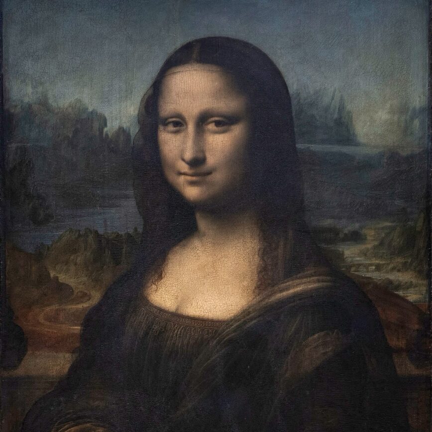 The most famous painting in the world is the Mona Lisa, probably a portrait of Lisa Gherardini, the wife of a Florentine silk merchant by the name of Francesco del Giocondo. Leonardo da Vinci’s Mona Lisa is one of 12,000 paintings in the Louvre in Paris, approximately 3,500 of which are on display at any given time. It’s displayed in a special room with the tightest possible security, with stern-looking guards on either side of the red museum rope that keeps tourists well away from the painting.