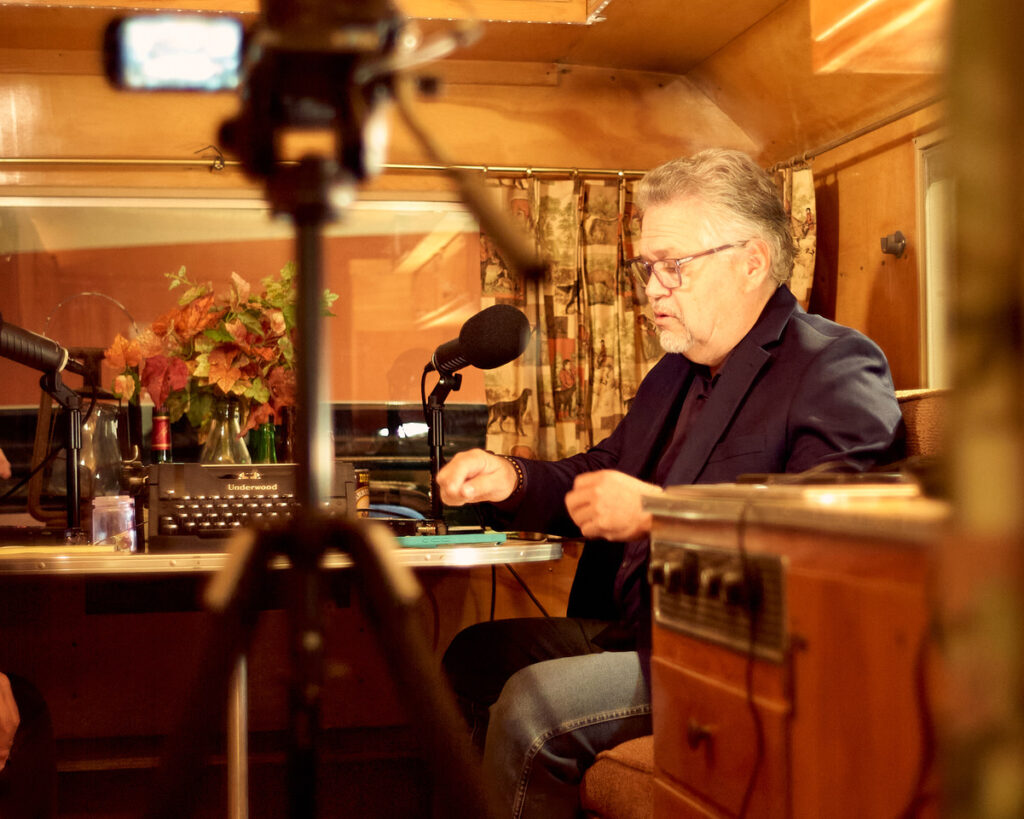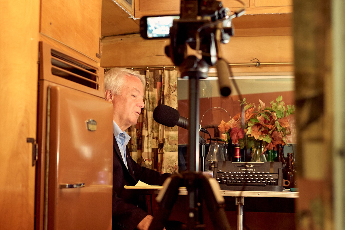 Clay and sidekick, Russ Eagle, spend time hanging out in John Steinbeck’s historic truck camper, Rocinante.